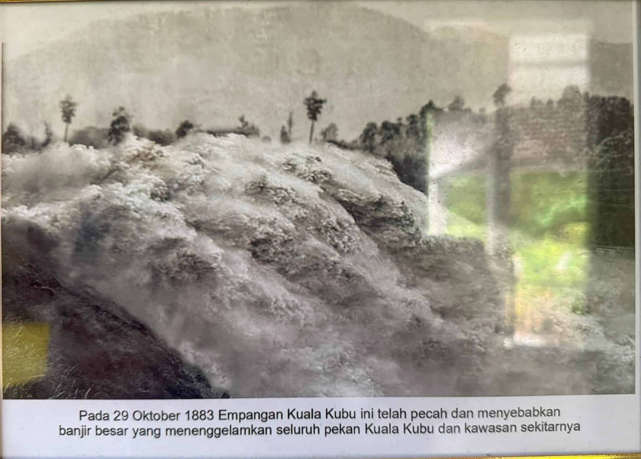 Pada pagi 29 Oktober 1883, penduduk Kuala Kubu dikejutkan dengan satu gegaran kuat diikuti bunyi dentuman dari arah empangan. Dalam beberapa detik, air melimpah keluar dari empangan yang pecah, membentuk gelombang banjir besar yang menghempap seluruh kawasan Kuala Kubu Lama.